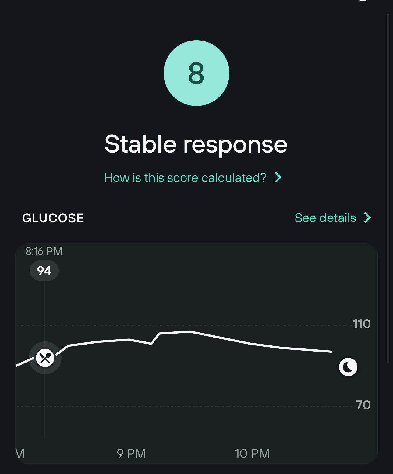 I always test my glucose response to a food on an empty stomach to get a “pure” reading. So yes, I did have ice cream for lunch yesterday in the name of science. It is a good thing that all of my recipes support good metabolic health!